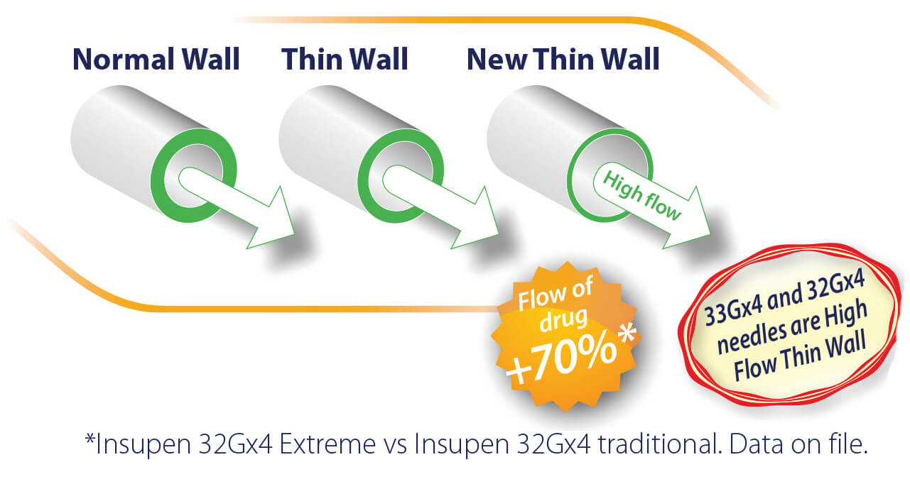 Insupen EXRT3ME: Thanks to the new needle tip geometry, the new Insupen Extreme range allows reaching a genuine indolor experience